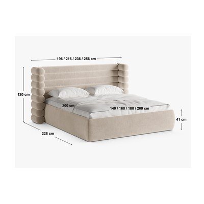200x200 cm, s prostorom za shranjevanje, z letvenim dnom, oblazinjena, iz tkanine bouclé, bež