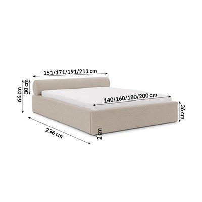 160x200 cm, s prostorom za shranjevanje, z letvenim dnom, oblazinjena, iz šenilje, bež