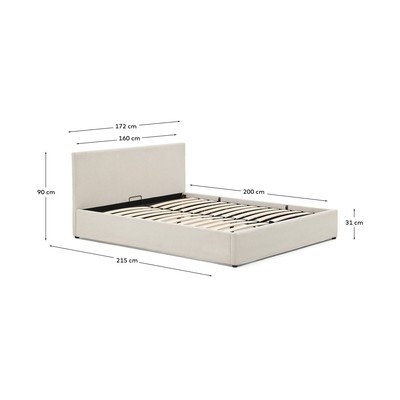 160x200 cmS prostorom za shranjevanjeZ letvenim dnomOblazinjenaIz šeniljeBež