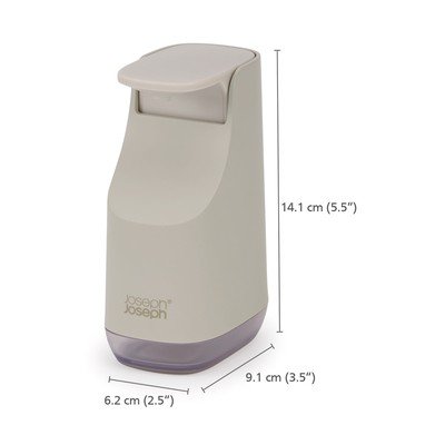 Dozirnik za milo Slim znamke Joseph Joseph se zaradi svoje ozke zasnove prilega tudi v manjše prostore, kjer zavzame manj prostora kot običajni dozirniki, kljub prostornini 350 ml.