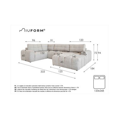 Raztegljiva/s prostorom za shranjevanjeLevi kotBežŠtirisedežnaŠirina 333 cmGlobina 213 cmGlobina sedeža 56 cm