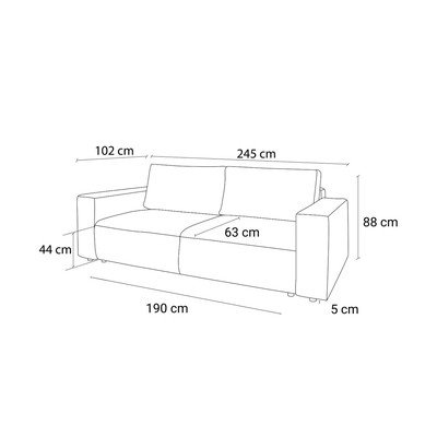 Široka, nekoliko trša zofa, ki bi lahko imela globlji sedež in morda tanjše blazine. Vizualno zelo lepo.