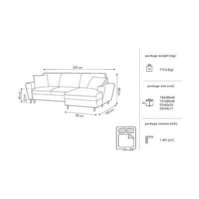 Iz rebrastega žametaRaztegljiva/s prostorom za shranjevanjeDesni kot/z ležalnikomPrimerna za hišne ljubljenčkeBežTrisedežnaŠirina 241 cm