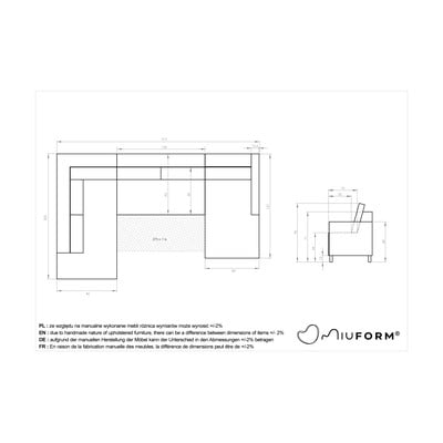 Zofa Lagom združuje preprostost, funkcionalnost in estetiko. Zaradi oblike črke U je velika in prostorna. Osnovna konstrukcija in visoke noge so izdelane iz bukovega lesa, ki je stabilen in v notranjost vnaša skandinavski slog. Ima način zlaganja in prostor za shranjevanje. Zato jo lahko uporabite kot posteljo za goste. Naj vas blagovna znamka Miuform osupne.