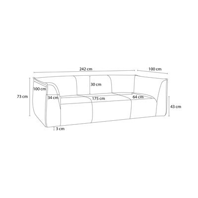 Iz rebrastega žameta, bež, trisedežna, širina 242 cm