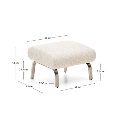 Noge iz brušenega nerjavečega jekla s premerom 1,8 mm imajo elegantno zaobljeno obliko in tabureju zagotavljajo moderno in stabilno podlago. Sedežna blazina ponuja srednjo trdoto, idealno za vsakodnevno uporabo. To je doseženo zahvaljujoč kombinaciji trakov, vzmeti in plasti pene visoke gostote (35 kg/m³ in 40 kg/m³), ki zagotavljajo trdnost, vzdržljivost in izjemno udobje.