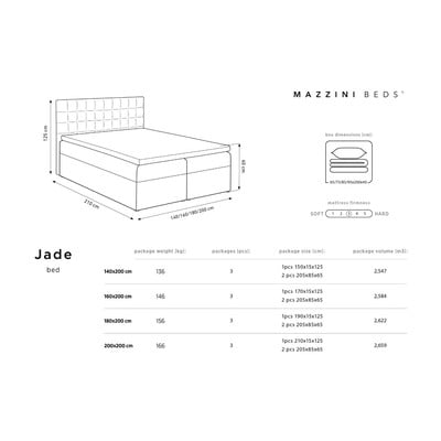 Zakonska postelja Jade vas bo še posebej pritegnila s svojo prijetno površino v številnih barvah. Praktično zasnovo z visokim vzglavjem dopolnjuje predal za shranjevanje pod obema posteljama, v katerega lahko poleg odeje shranite tudi druge predmete, na primer sezonske stvari, ki jih trenutno ne potrebujete.