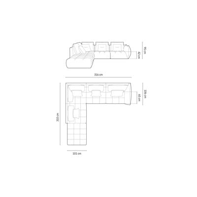 Žametna, levi kot/v obliki črke L, primerna za hišne ljubljenčke/odporna na madeže, bež, večsedežna, širina 316 cm