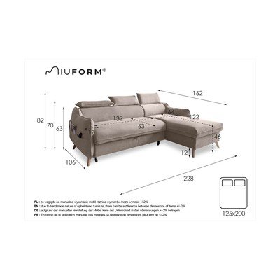 ŽametnaNastavljiva/raztegljiva/s prostorom za shranjevanjeDesni kot/z ležalnikomVodoodporna/primerna za hišne ljubljenčkeBežTrisedežnaŠirina 228 cmGlobina 162 cmGlobina sedeža 63 cm
