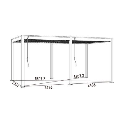 Lamele lahko ročno obračate od 0° do 135° z ročajem. Pri obračanju lamel vam ni treba skrbeti, da bi poškodovali konstrukcijo pergole. V primeru dežja se voda odvaja z edinstvenim sistemom za odvajanje vode, ki je vgrajen neposredno v konstrukcijo.