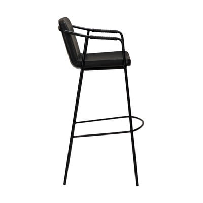Barski stol Boto je eleganten in praktičen kos pohištva zaradi tankih kovinskih nog, ki se nadaljujejo v naslone za roke. Oblazinjenje iz umetnega usnja je ovito okoli naslonjal za roke kot okrasna podrobnost, ki celoten videz stola dvigne na višjo raven.
