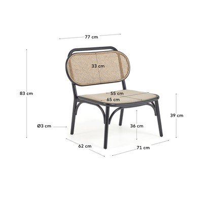 Sodoben in hkrati nekoliko retro je naravni fotelj Kave Home Doriane. Konstrukcija tega fotelja je izdelana iz masivnega hrastovega lesa, ki ga dopolnjujeta ročno pleteno naslonjalo in sedež iz ratana s prijetno oblazinjeno površino z lanenim učinkom, ki je obdelana tudi z vodoodbojno tkanino. Les, uporabljen za ta stol, je pridobljen na okolju prijazen način, kar dokazuje certifikat FSC. Privoščite svojemu domu naraven kos oblikovanja.