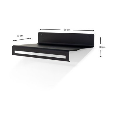 S polico, kovinski, črn, širina 60 cm, višina 18 cm, globina 30 cm