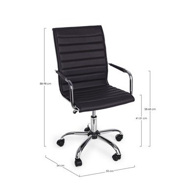 Iz umetnega usnja, na koleščkih/z nastavljivo višino/z nasloni za roke, črn, nosilnost 110 kg, višina sedeža 51-51 cm
