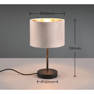 S tekstilnim senčilom, kovinska, z vtikačem, črna/bež, višina 33 cm
