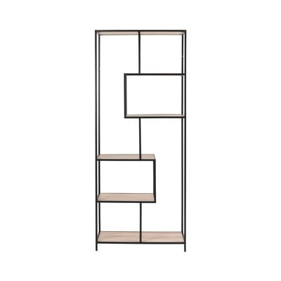 Regal SeafordV hrastovem dekorju, iz MDF plošč, površinska obdelava: Papir/površinska obdelava: prašno lakiranje, črn/v naravni barvi, širina 77 cm, višina 185 cm, globina 35 cm
