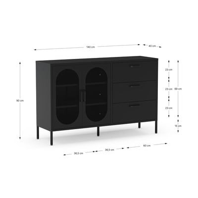 Črna komoda 140x90 cm Diora – Marckeric