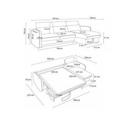 Za spanje/nastavljiva/raztegljiva/s prostorom za shranjevanjeDesni kot/levi kot/s kotom po izbiri/z ležalnikomVodoodpornaČrnaŠtirisedežnaŠirina 300 cmGlobina 180 cmGlobina sedeža 58 cm