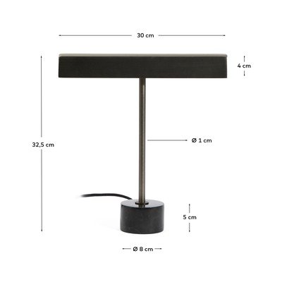 Njen zgornji del je izdelan iz brušenega kovine, kar ji daje prefinjen in sodoben videz, ki se zlahka vklopi v vsak interier. Stabilnost in ekskluzivnost svetilki zagotavlja marmorno podnožje. Vsak kos marmorja ima edinstven vzorec in odtenke, zato je vsaka svetilka original.