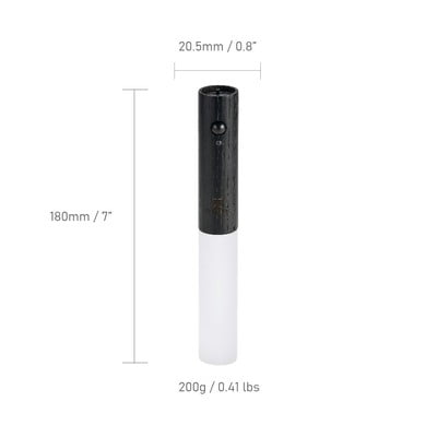 Narejena je iz kakovostnega lakiranega lesa in matiranega akrilnega stekla. V njegovem ročaju so magneti, ki omogočajo, da ga s priloženim okroglim stojalom namestite na steno. Od tam ga lahko preprosto odstranite in ga kadar koli vzamete s seboj - priročen je za nočne sprehode in kot vir svetlobe za delo ali branje.