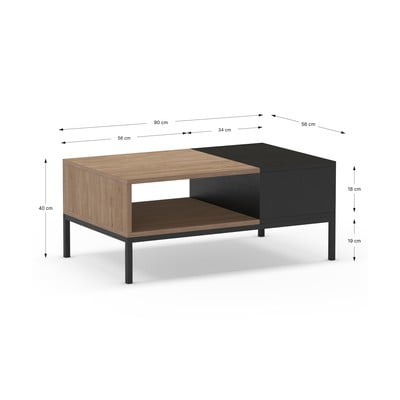 Črna/naravna mizica 56x90 cm Cailin – Marckeric