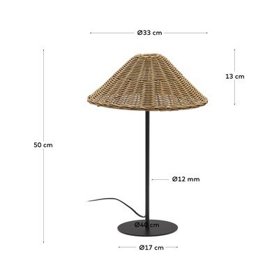 S senčilom iz ratana, kovinska/iz ratana, z vtikačem, črna/v naravni barvi, višina 50 cm