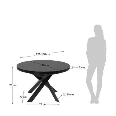 Raztegljiva, z dodatno ploščo, s stekleno mizno ploščo, ø 160 cm, dolžina v raztegnjem stanju 160 cm