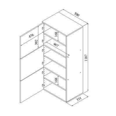 Omarica za čevljeIz iverne plošče, površinska obdelava: Melamin, v mat dekorju, bela/črna, število parov čevljev 18 , širina 50 cm, višina 119 cm, globina 33 cm