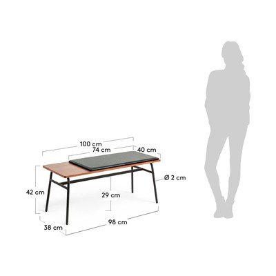Iz umetnega usnja, kovinska, črna/rjava, širina 100 cm, globina 40 cm, višina 44 cm