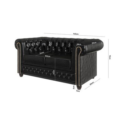 Iz umetnega usnja, Chesterfield, črna, vodoodporna/primerna za hišne ljubljenčke/odporna na madeže, dvosedežna, širina 148 cm