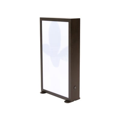 Dobro je vedeti: Svetilo je izdelano iz MDF plošče v barvi temnega hrasta. V aluminijast okvir sta nato vstavljeni dve stekli iz akrilnega stekla s 50- in 74-odstotno prozornostjo.