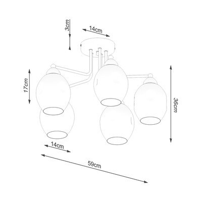 Viseča svetilka Garten znamke Sollux. Zaradi večplastne konstrukcije in steklenih senčil zagotavlja enakomerno osvetlitev prostora.