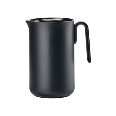 Črna termoska Singles znamke Zone je eleganten pripomoček za ljubitelje kave. Termoska s prostornino 1 liter in preprosto obliko ohranja pijačo vročo zaradi steklenega vložka in embalaže iz PP. Praktičen pokrov omogoča enostavno nalivanje brez vijačenja. Z začetno temperaturo 95 °C lahko termoska po 6 urah ohrani temperaturo 65-68 °C, po 10 urah pa 55-60 °C.