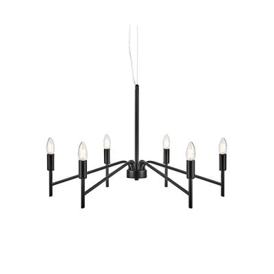 Prebudite svojo notranjo kraljico s to visečo stropno svetilko Monarch podjetja Markslöjd. Črna kovinska konstrukcija zagotavlja prostor za 6 žarnic. Tako lahko svetlobo prilagodite svoji podobi glede na obliko uporabljenih žarnic.