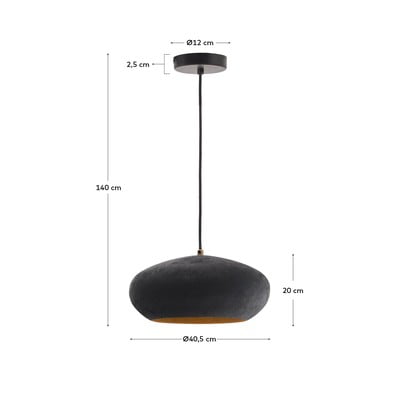 Viseča svetilka Inda iz Kave Home navdušuje z minimalistično zasnovo s kovinskim senčnikom v črni barvi z učinkom terakote. Notranjost senčila je pobarvana v medeninastem odtenku, kar ustvarja zanimiv kontrast. Svetilo s premerom 30 cm je združljivo z žarnico E27 z največjo močjo 25 W. Žarnica ni priložena.