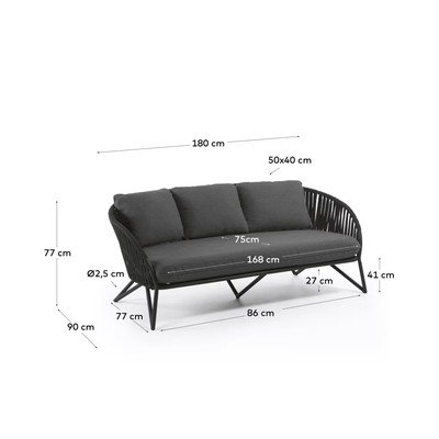 Trisedežen, črn, nosilnost 320 kg, širina 180 cm, višina 77 cm, globina 90 cm
