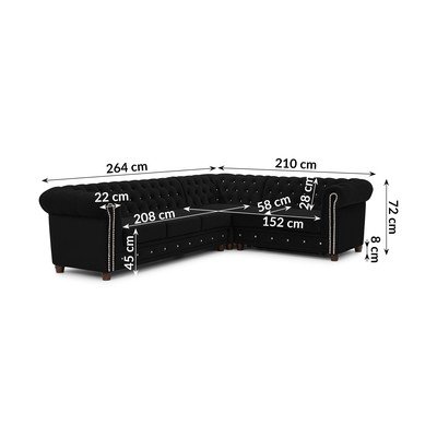 ŽametnaRaztegljivaChesterfieldDesni kot/v obliki črke LČrnaVodoodporna/odporna na madežeŠtirisedežnaŠirina 264 cm