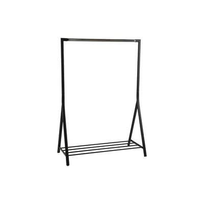 Brent je kovinsko stojalo za oblačila v črni barvi s kromirano palico za garderobo. Primeren je kot alternativa garderobni omari ali kot obešalnik v predsobi s polico za čevlje.
