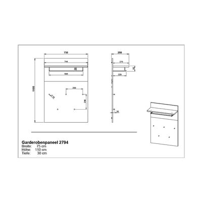 Garderobni panel FremontV hrastovem dekorju, iz iverne plošče, površinska obdelava: Melamin, v naravni barvi, širina 75 cm, višina 110 cm, globina 30 cm