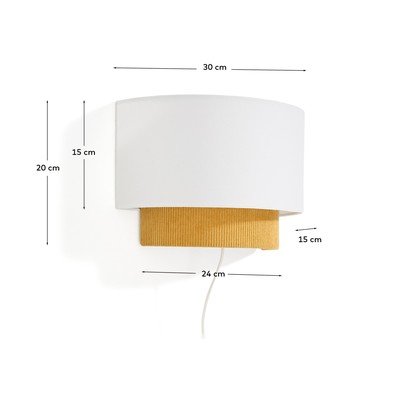Stenska svetilka Bianella znamke Kave Home se ponaša z uravnoteženim in sodobnim dizajnom. Izstopa z dvojnim senčilom iz finega žameta in bombaža, ki zmehča svetlobo in pomaga ustvariti prijetno vzdušje v vsakem prostoru.