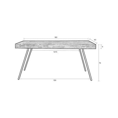 Jedilna miza White Label ima ploščo iz recikliranega tikovega lesa v mat črni barvi s prozornim lakom.