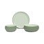 Jedilni servis iz kamnite posode Aura Nomi znamke Bonami Selection navdušuje z organskimi oblikami, zemeljskimi barvnimi toni in kontrastom med sijajno glazuro v notranjosti in matirano zunanjo površino.