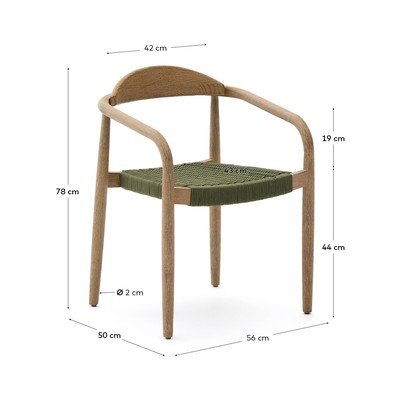 Jedilni stol Nina znamke Kave Home je izdelan iz naravnih materialov po obrtniških postopkih. Njegova konstrukcija z naslonjali je izdelana iz masivnega akacijevega lesa z naravno obdelavo, pri čemer se vsak kos ponaša z edinstvenimi odtenki in lesno teksturo. Les ima certifikat FSC™, ki zagotavlja odgovorno upravljanje gozdov.