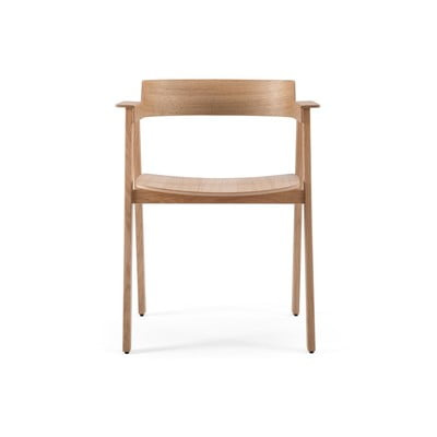 Za stol Flip podjetja Gazzda so značilni izraziti nasloni za roke, ki so mu dali ime in vizualni značaj. Izdelan je iz masivnega lesa iz obdobja z gladko lakirano površino, zato je trpežen in enostaven za vzdrževanje.