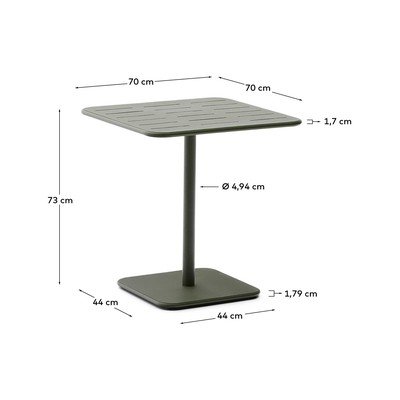Izdelana je iz pocinkanega jekla, zaradi česar je odporna proti obrabi in koroziji in trajnejša od običajnega jekla ter pripravljena na zahtevne zunanje razmere. Noge mize so opremljene tudi z nastavljivimi plastičnimi ščitniki, ki preprečujejo poškodbe ali praske na tleh.