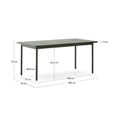 Konstrukcija iz pocinkanega jekla daje mizi sodoben videz in zaradi odpornosti na rjo in korozijo zagotavlja dolgo življenjsko dobo. Noge so opremljene s plastičnimi ščitniki za zaščito vseh vrst tal, zato je miza idealna za notranjo ali zunanjo uporabo.