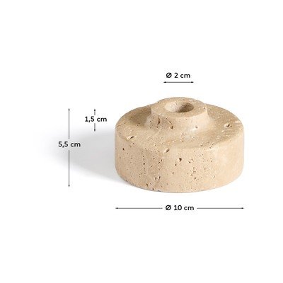 Svečenik Zalvori podjetja Kave Home je izdelan iz travertina, ki mu daje značilno teksturo z drobnimi nepravilnostmi. Zaradi tega je vsak kos edinstven ter ima svoje nianse in vzorec.