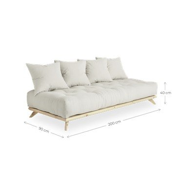 Okvir je izdelan iz visokokakovostnega borovega lesa, na njem pa je udoben futon, napolnjen s penasto sredico in volno. Vključene so tudi štiri velike blazine, ki zagotavljajo udobje za vaš hrbet.