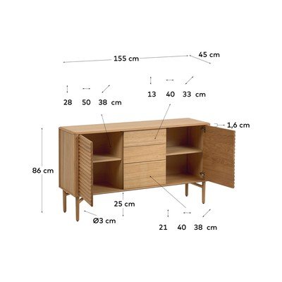 Komoda LenonV hrastovem dekorju, iz MDF plošč, površinska obdelava: Furnir/površinska obdelava: lak, v naravni barvi, širina 155 cm, višina 86 cm, globina 45 cm
