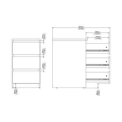 Z dimenzijami 40x70x50 cm ponuja kompakten prostor za shranjevanje, ki je primeren za spalnico in dnevno sobo. Trije prostorni predali na kovinskih vodilih zagotavljajo enostavno odpiranje in zapiranje. Minimalistična zasnova brez ročajev daje komodi sodoben videz. Naravni hrastov dekor je enostavno vključiti v različne sloge notranjosti.
